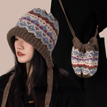 Berretto invernale caldo in maglia acrilica convertibile in borsa impacchettabile 2 in 1 berretto Jacquard da donna